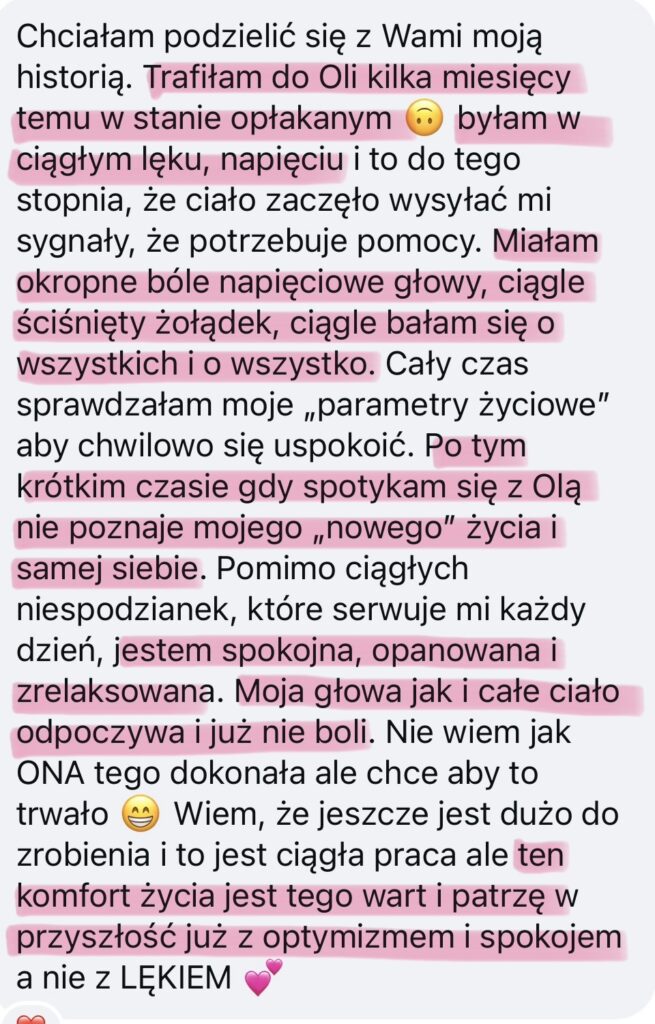 Chcę dotrzeć do wszystkich osób, które żyją w napięciu, czarnych scenariuszach i straciły już nadzieję na zmianę. Do tych, które myślą: „już taka jestem”, „tak już mam”, „tak będzie zawsze”.