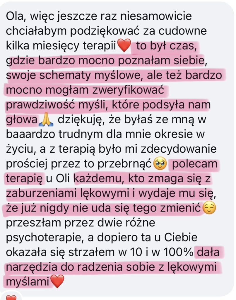 Nazywam się Ola Ksenycz, jestem psychologiem i psychoterapeutą CBT (in spe). Zanim zaczęłam pomagać innym radzić sobie z lękiem, sama przez lata próbowałam poradzić sobie z własnym, więc..